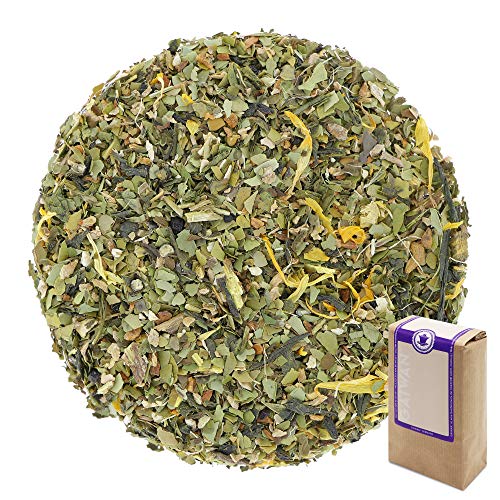 Ingredientes: yerba desvaído verde², jengibre¹, té verde¹ de Piedra, menta nana¹, regaliz¹, limón granulado¹, cassia¹, pimienta negro¹, caléndula¹, perfume oriundo. Ingredientes¹ de la agricultura ecológica. Ingredientes² de la agricultura ecológica mesurado por IMO.