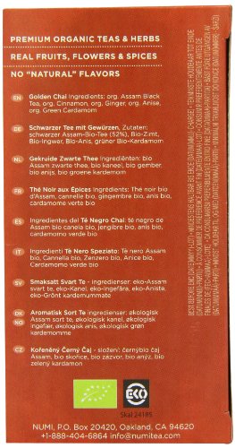 numi Organic Golden Chai – Spiced Assam 18 bolsas (3 unidades, X 47 g) – Bio