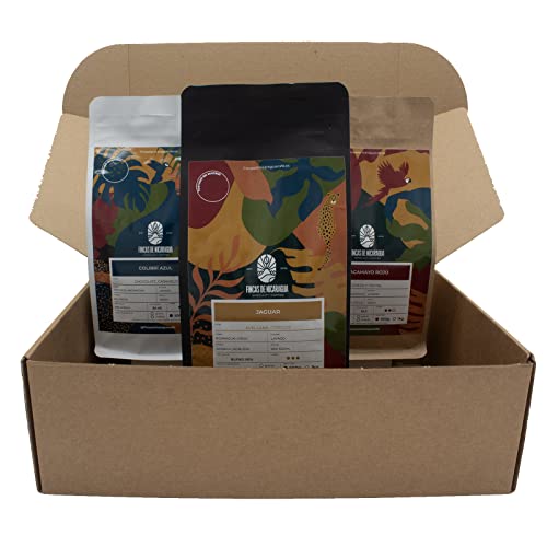 3 Fincas, Jaguar, Colibrí Azul y Guacamayo Rojo. Cada finca con un sabor y tueste diferente. Un pack para degustar algunos de los mejores cafés que producen las Fincas de Nicaragua
