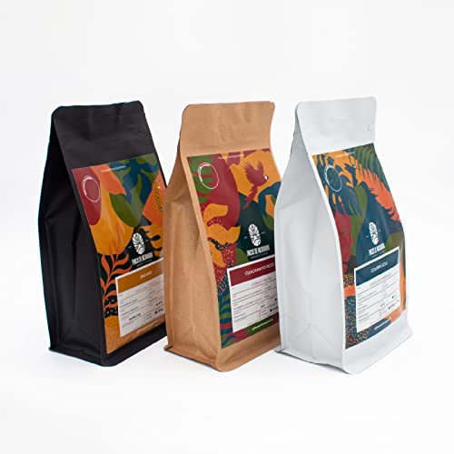Con Fecha de tueste. Tostado cada 30 días Café en divieso Indígena. Es un café 100% Arábica (excepto el Jaguar que es blend). Tres Fincas distintas. Con sabores y aromas muy diferentes