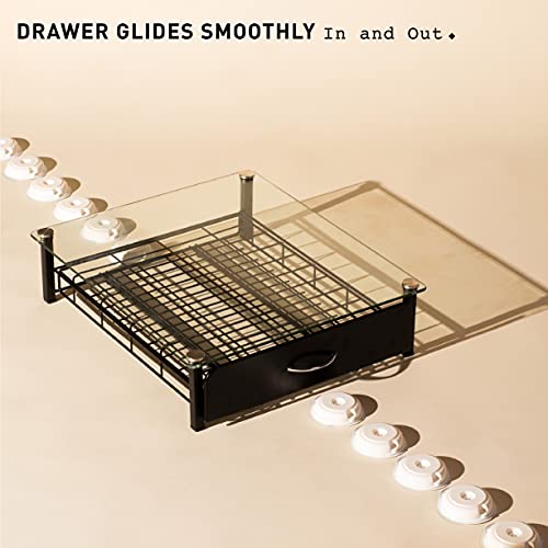 CONSTRUIDO (HACIA FUERA) DURADERO: Movimiento a mano de metal mordaz con tapa de vidrio templado grueso, nuestra caja de acopio de cápsulas de café mantiene su integridad estructural cuando se usa como basa para la máquina de café. Puede usarlo durante años sin preocuparse. Características clave del producto