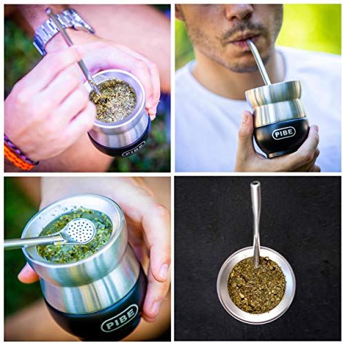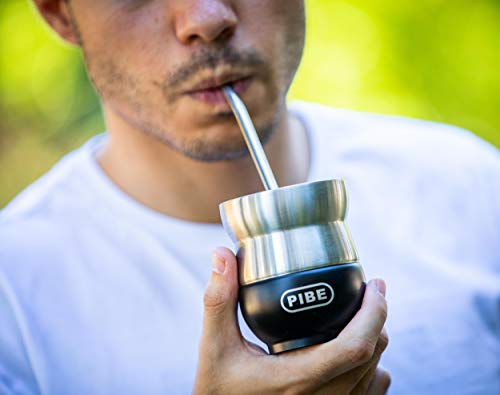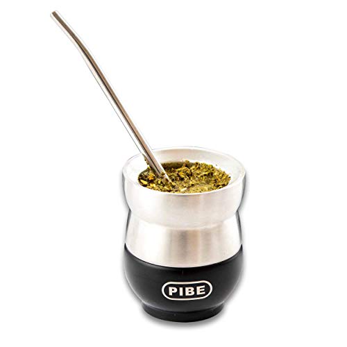Pibe Set Mate Argentino Acero Inoxidable Auto Limpieza Estilo Calabaza para Yerba Mate. Alternativa Mate Calabaza. Pack…