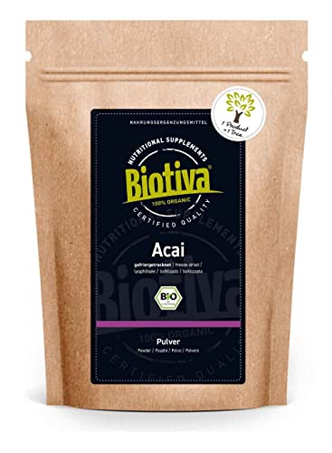 Biotiva Polvo de azaí orgánico 100 g liofilizado – polvo de fruta – Brasil – Euterpe precatoria – llenado y verificado…