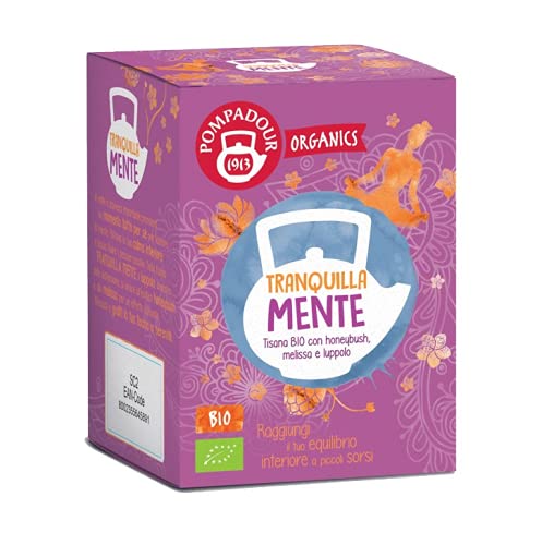 Buscando constantemente la calidad. Desde 1964 hasta la contemporaneidad, la marca POMPADOUR se ha convertido en un símbolo de calidad, responsabilidad y excelencia: una historia de acogida, marcada desde sus inicios por un fuerte impulso a la innovación. Con más de 100 productos, POMPADOUR ofrece hoy el mayor surtido del mercado italiano. El 14 de julio de 1882 se funda en Dresde la distribución matriz R. Seelig and Hille Sas, en 1892 Rudolf Anders y Eugen Nissle, dos jóvenes emprendedores con espíritu pionero, se hacen acusación de la distribución e introducen una de las innovaciones más revolucionarias del mercado del té. : de antemano, comercializaban mezclas de té envasadas. Hasta entonces, el té solo se podía comprar a granel en tiendas especializadas, adonde se encontraba en grandes latas de aluminio. Anders y Nissle, sin embargo, empiezan a ofrecerlo ya envasado, introduciendo la idealización de que de esta forma el té se conserva mejor desde un punto de vista aseado y conserva mejor su aroma. Estas elegantes cajas, hechas de papel brillante dorado y plateado, parecen pequeñas joyas y conquistan de inmediato a las mujeres, que las compran con frecuencia y las llevan a sus casas como si fueran un regalo precioso. Esta intuición sienta las bases del acogida de la distribución y su futura fama internacional. – «Mente tranquila»: a veces es realmente importante tomarse un momento para exculpar su mente. Encuentra tu calma interior y deja fluir los pensamientos positivos. En la infusión de Tranquilla Mente, el lúpulo, un maestro de la relajación, se combina con el exótico arbusto de miel y melisa, para un efecto calmante. ¡Relájese y disfrute de su té de hierbas en serenidad! Producto ecológico, naturalmente sin lactosa, sin gluten, apto para una moderación vegana. (1 x 15 bolsitas de té – 27 gramos).