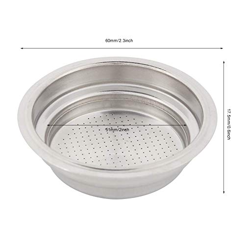 TAMAÑO Y MATERIAL: el diámetro interior es de 51 mm/2 pulgadas, la altura es de 17,5 mm/0,6 pulgadas y el diámetro exterior inferior es de 60 mm/2,3 pulgadas. Canasta de filtros de café Hechos de Hoja inoxidable, resistentes y duraderos.