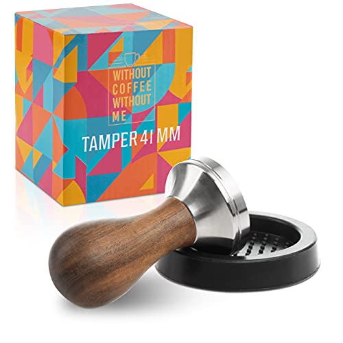 Prensador de café de 41 mm, de acero inoxidable con mango de madera elegante, sello para disfrutar de todo el cuerpo…