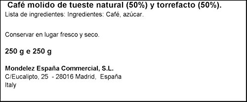 Contiene 50 % café molido de tueste natural y 50% torrefacto