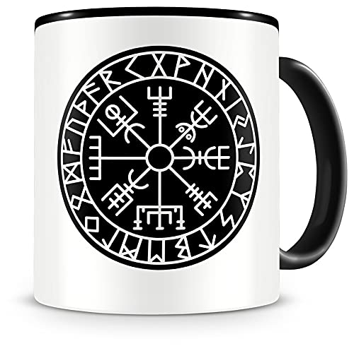 Samunshi® Vegvisir con runas 2 tazas, taza de café, taza de té vikingo Alemania (300 ml, Vegvisir con runas 2 300 ml…