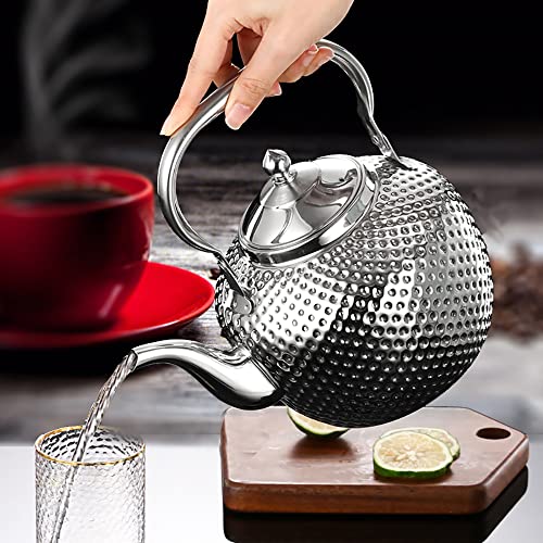 SANQIAHOME 1,5 L Tetera de Acero Inoxidable con infusor extraíble, Hervidor para Estufa y Gas, para cocina de inducción, Apto para casa o restaurante
