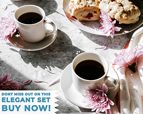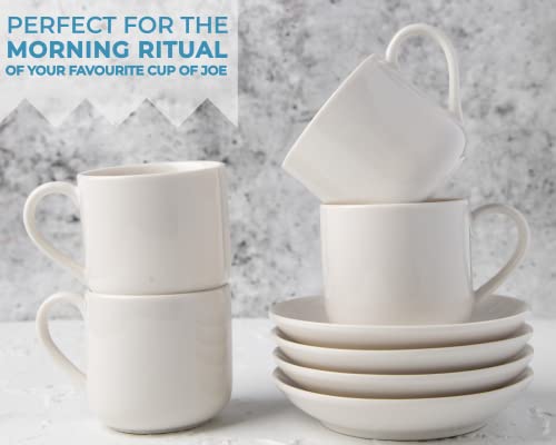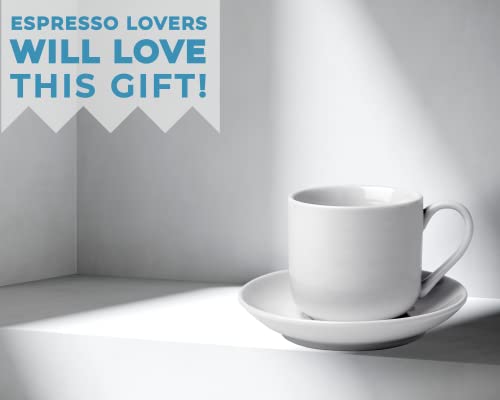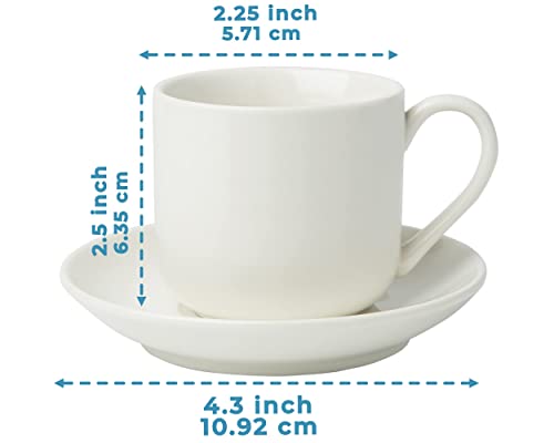 Set de 4 Tazas para Espresso con platillos a juego – Porcelana Blanca Premium, Set de 8 tazas para regalo – Tazas…