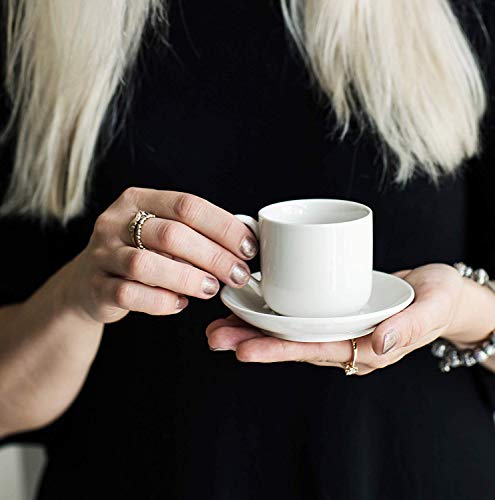 Juego de 8 piezas de café espresso de porcelana blanca con cuatro (4) tazas de espresso de 112 ml. de capacidad y cuatro (4) platillos a juego. PerfectFor Everyday Use Y/Or Special Occasions, también se puede utilizar para servir café turco, chocolate caliente, o té.