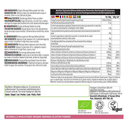 Sevenhills Wholefoods Bio Moringa Oleifera en polvo 200g
