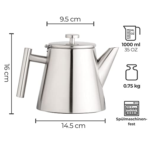 SILBERTHAL Tetera de acero inoxidable 1 litro | Mantiene el té Caliente | Tetera con Filtro para infusiones | Tetera…