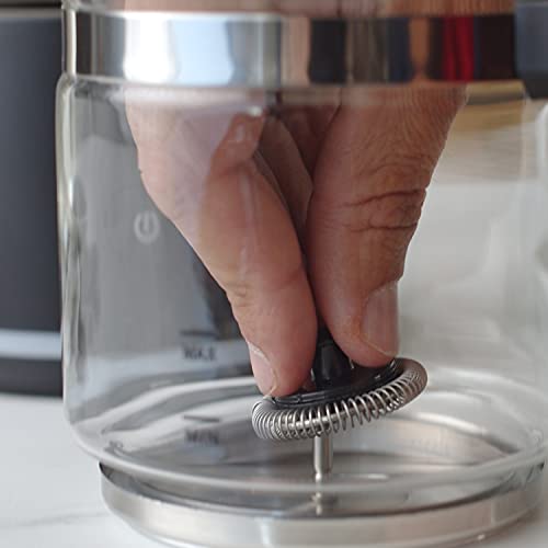 FÁCIL LIPMIEZA Y USO: jarra del espumador de leche apta para lavavajillas. Espumador con arrastre magnético que permite un uso más acogedor al momento de sacar la jarra e intercambiar prescindible espumador y batidor.