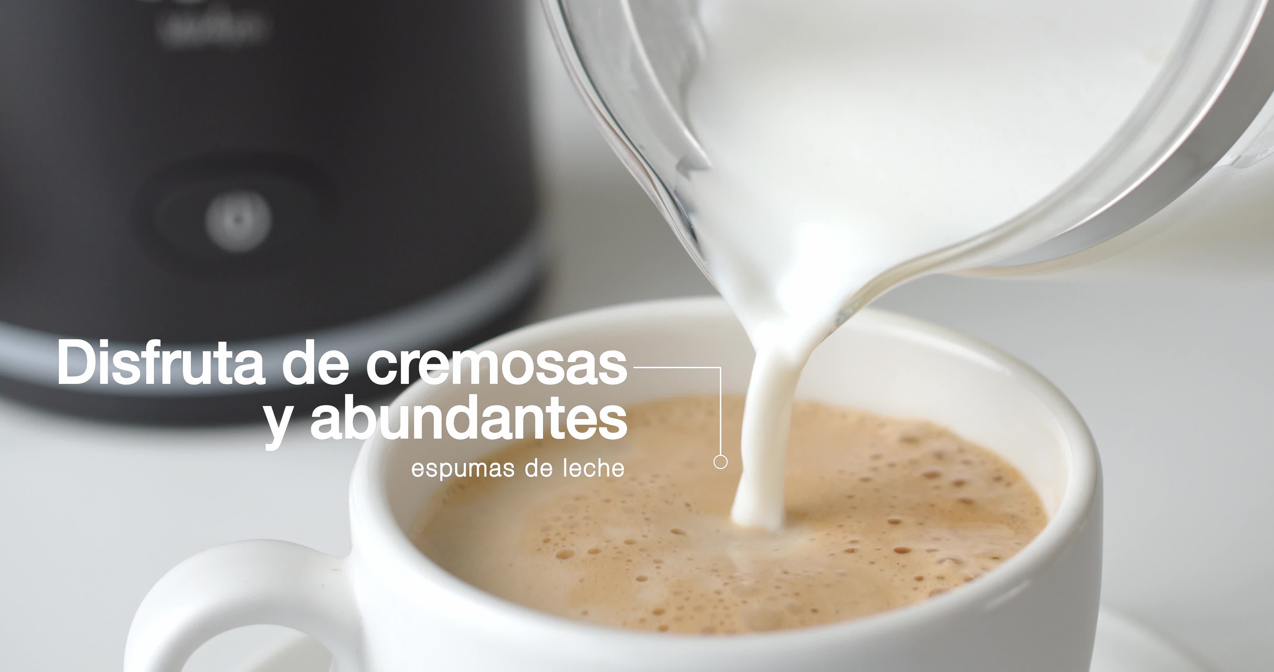 3 FUNCIONES EN UN SOLO BOTÓN: Realiza espuma en leche fría, espuma en leche caliente y mezcla leche y chocolate para obtener excelentes batidos rápidamente. Con potencia de 600W. Cuenta con dos accesorios: el espumador y el batidor.
