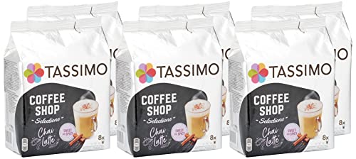 El Lote consiste en 5 equipaje de Chai Latte. Cada atado individual contiene 8 T-DISCs de extracto de té aromatizado con azúcar y leche desnatada en polvo. Cápsulas compatibles con cafeteras Tassimo Bosch. Chai Latte pertenece a nuestra gama Coffee Shop, inspirada en bebidas de cafetería. Este Lote contiene 5 equipaje con 8 bebidas cada uno: 40 bebidas.