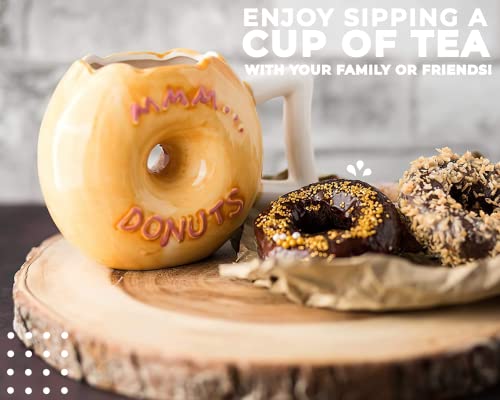 Taza de café donut divertida + única – Los aficionados reconocerán el «Mmmmmmm… Donuts», esta divertida taza de café comenzará cada mañana con una sonrisa; colorida y divertida taza coleccionable