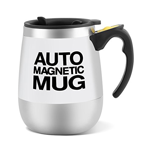 Fdit Taza de cafe autoagitante de Acero Inoxidable con Cierre magnetico para cafe, te, Chocolate Caliente, Leche y…