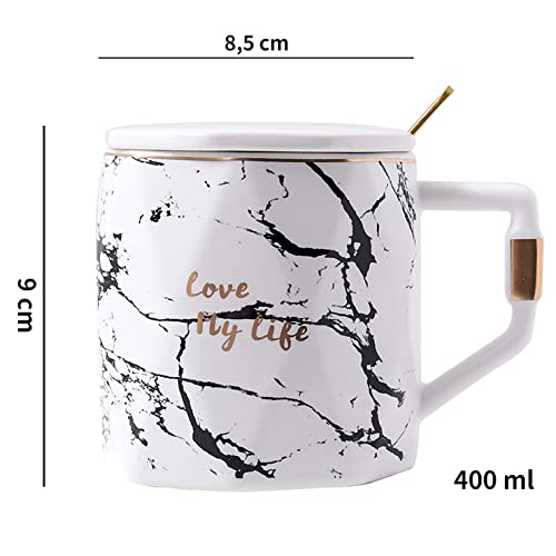 Taza de Café Grande Divertida Taza de Té Cerámica 400ml Taza Desayuno Originales con Cuchara y Posavasos Mugs de…