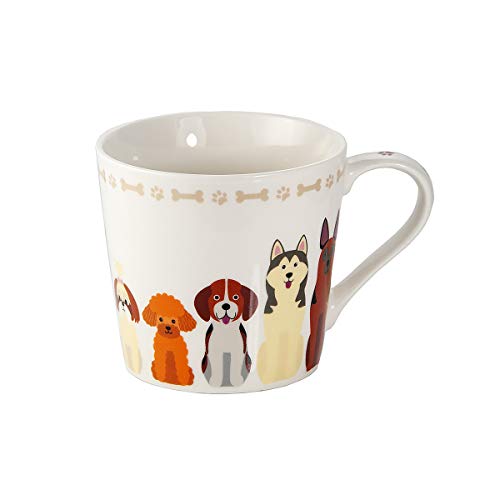 Taza de refrigerio de porcelana de alta calidad con diseño razas de perros. Adecuada para café, té, café con leche, chocolate caliente y todo tipo de bebidas calientes. Esta taza de alfarería de gran tamaño, apta para lavavajillas y microondas, tiene diseños como de Pastor Tudesco, Husky, Beagle, Caniche, Shih Tzu, Terrier, Pomerania, Schnauzer, Corgi y Perdiguero de Burgo. Esta taza café está embalada en una caja de colores y es un fantástico regalo para cumpleaños, nuevos hogares, fiestas de rendija de casas, e para dueños y amantes de los perros. También es espiritual para Navidad y el Día de la Madre. Tazas ideales para hombres y mujeres, con diseño de perros exclusivo de Spotted Dog Gift, solo están disponibles a través de Amazon. Tamaño de taza grande con Espacio de 15 oz. líq. 426 ml. Dimensiones: Altura: 9 cm. Ancho de la parte rector: 11 cm; parte inferior: 7,63 cm. También está disponible como juego de 4 y 2 tazas de café, y cada diseño se puede adquirir como taza individual. Este diseño también cuenta con juegos de artículos textiles paños de cocina, delantal, manoplas tostadero / guantes tostadero y bolsas de compra reutilizables a juego inspirados en razas de perros. Fantásticos artículos decorativos de cocina para los amantes de los perros