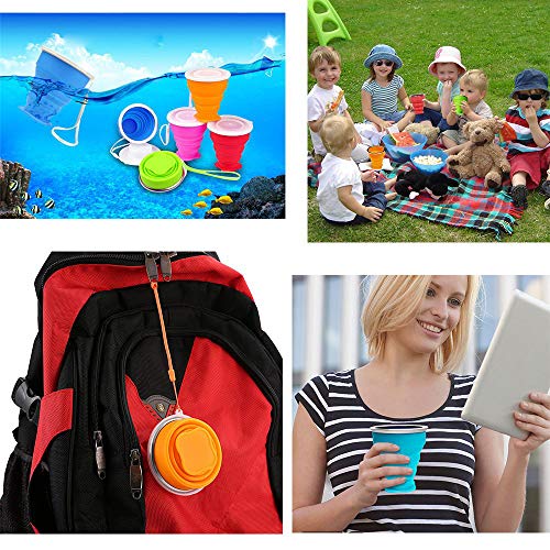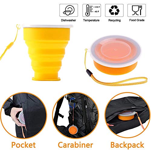 Alta calidad: la taza de viaje plegable de plástico de silicona se puede utilizar como tazas de café con cordón, margen de puñal inoxidable y tapa de silicona, cuerpo retráctil. Sin BPA, aprobado por la FDA. No tóxico, no gotea, reutilizable.