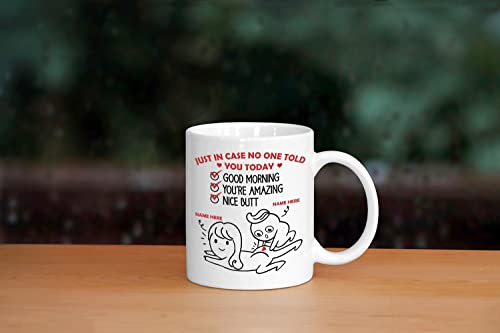 [Regalo perfecto] Esta taza es adecuada para cualquier taza personalizada para pareja, Good Morning You’re Amazing Nice Butt, divertida taza de regalo para pareja, regalo divertido para esposa, novia, San Valentín para su intransigente. Estarán muy felices y emocionados cuando reciban este regalo.