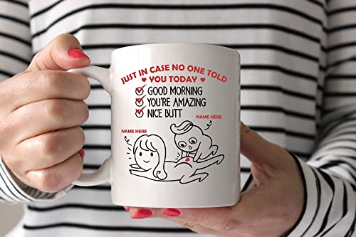 Taza personalizada para pareja, Good Morning You’re Amazing Nice Butt, divertida taza de regalo para pareja, regalo divertido para esposa, novia, San Valentín para ella, viene en una taza de alfarería de 11 y 15 onzas con un gran agarradero afable.