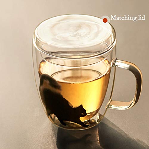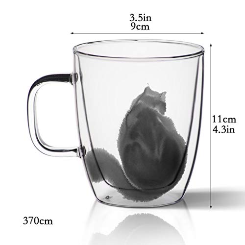 Tamaño general: despierto de mantener 12.5 onzas de líquido, nuestra taza de gato mide 9cm de ancho X 11 cm de altura, viene con tapa a juego