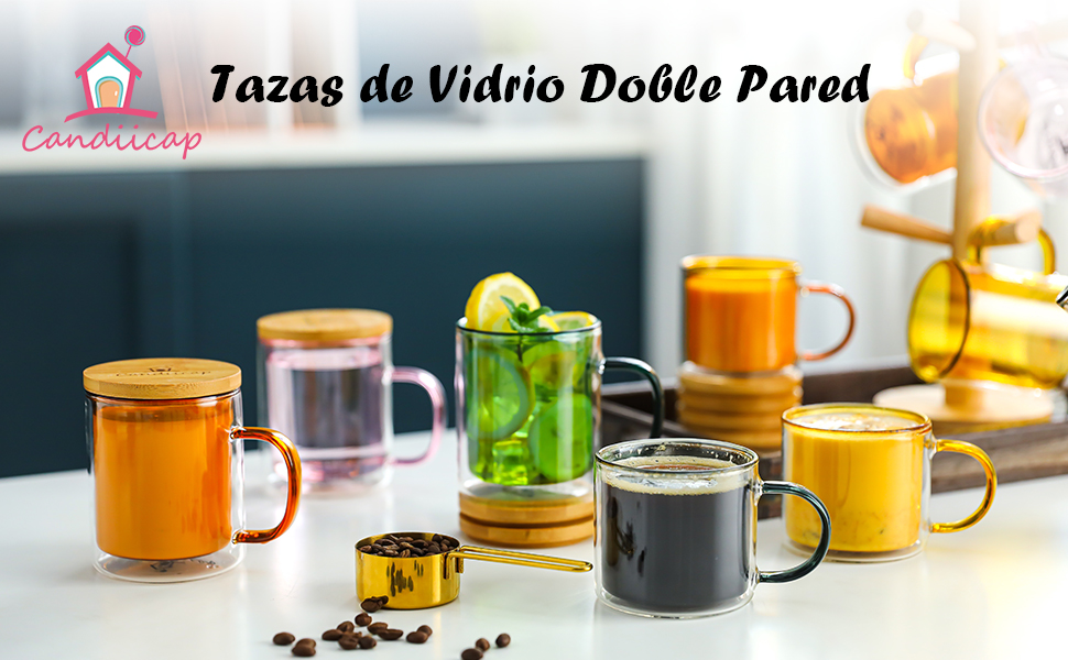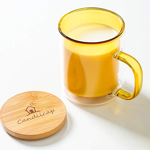 Tazas de Vidrio Doble Pared de Color con Mango y Tapa (275ml), Candiicap Tazas de Café para Bebidas Frías y Calientes…