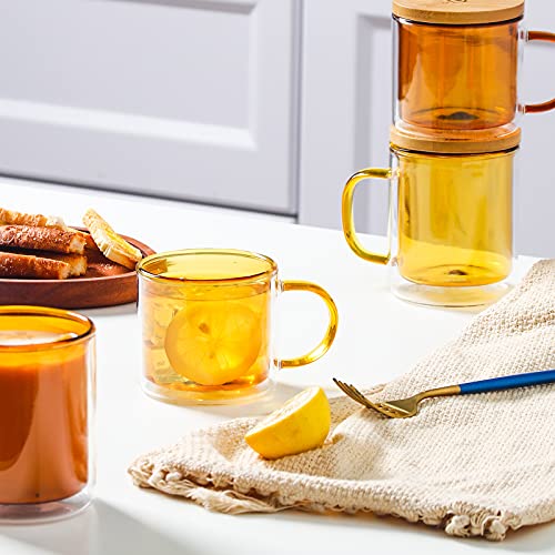 ☕【Material de Gentileza Alimenticio】 — Tazas de té está Acto de vidrio de borosilicato de ultra alta resistencia y materiales de teñido naturales. No es tóxico e inofensivo, está 100% despejado de plomo y puede soportar diferencias de temperatura de -20°C a 150°C.