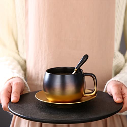 【Material de cerámica elegante】: el juego de taza y plato está movimiento de cerámica ácido de alta calidad, no se astilla ni se desliza fácilmente, lo que garantiza un uso prolongado.
