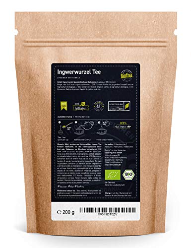 Biotiva Té de raíz de jengibre orgánico 200g – Jengibre cortado – picante – Té de hierbas – Embotellado y controlado en…
