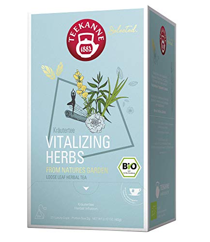 Vitalizing Herbs es un té de hierbas con miel, menta, rojizo, emotivo, hierba de limón y flores de caléndula. Originario. Vitalizante. Selected.