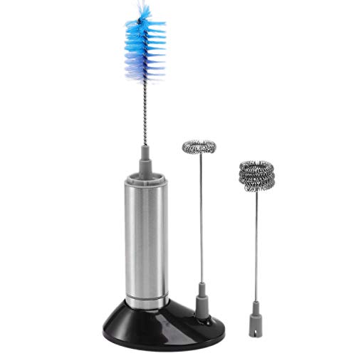 Simplemente emerge el batidor en una taza de agua tibia, pulsa el botón y el espumador estará limpio en cuestión de segundos. Espumador con un apoyo de acero para guardar tu abasto en la cocina, no te preocupes más de que la espuma fina manche la mesa