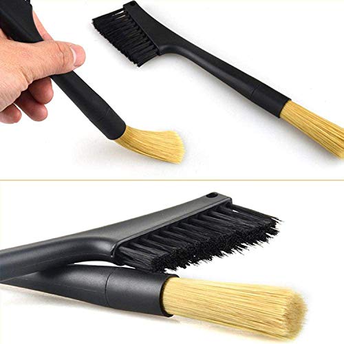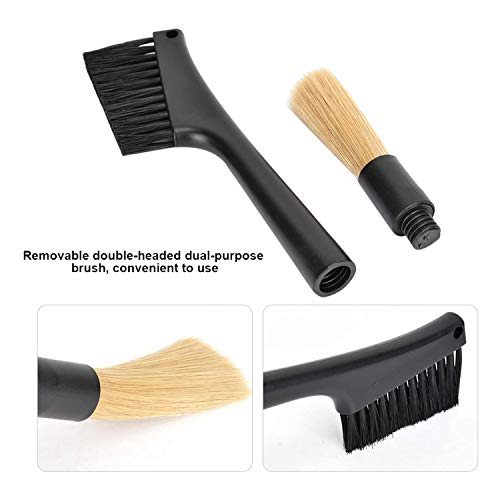 CEPILLO DE DOS EXTREMOS: Un extremo tiene un Hucha de amoladora, el otro extremo tiene un Hucha de mostrador La portaestandarte plana puede limpiar un área grande del cuerpo de la amoladora y la mesa de la barra, la portaestandarte redonda puede limpiar la salida de polvo y un pequeeo extensión.