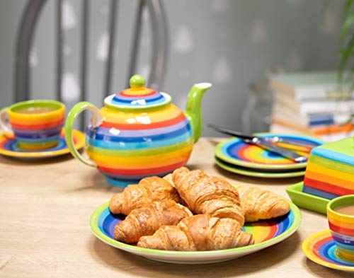 La tetera pintada a mano arcoíris es apta para lavavajillas y microondas. Seguro que alegrará tu día. Otros artículos a juego están disponibles.