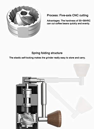 El molinillo de café manual Nano tiene un diseño de estructura plegable tipo resorte, autobloqueo y plegable. Es fácil de causar y amontonar, y se puede colocar en un bolso o mochila, lo que te permite disfrutar de una taza de café molido a mano durante el viaje.
