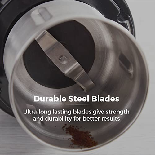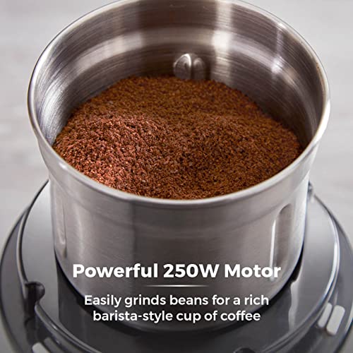 Potente motor de 250 W: cuenta con un potente motor de 250 W que muele fácilmente granos para una rica taza de café estilo barista, así como especias, frutos secos y hierbas para hornear y cocinar ingredientes versátiles