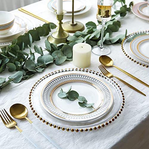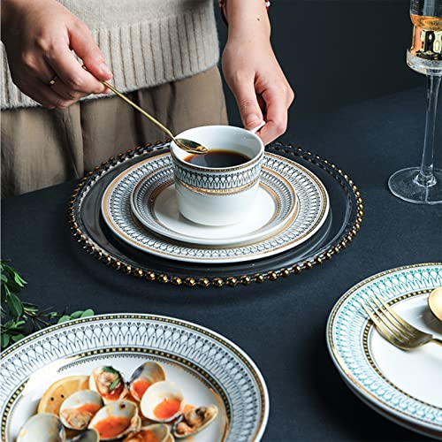✅[Stylish Design]Este juego de vajilla Bone China es apilable y se puede colocar de forma segura en el armario para ahorrar más espacio en su cocina. Elementos dorados antiguos y lujosos, patrón de textura de estilo europeo, sin decoloración ni caída, textura afilado, después de dos cocciones a alta temperatura, mostrando un blanco sedoso