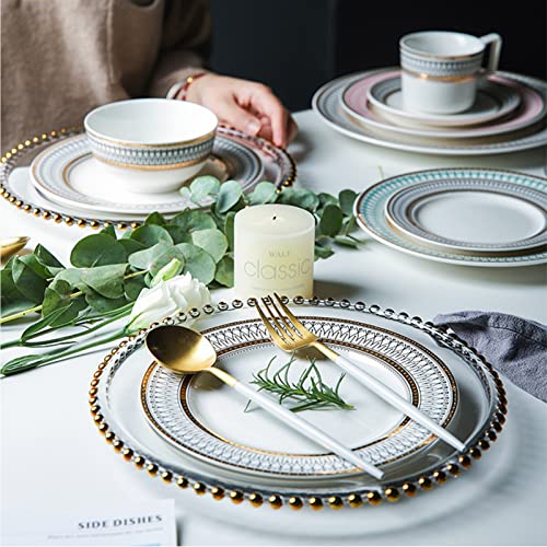 Los juegos de vajilla se cocinan con Bone China de alta calidad. afilado a los arañazos, duradero y duradero, sin preocuparse por astillas, muescas, grietas y arañazos. La vajilla sin plomo ni cromo, asegúrese de que sus alimentos se almacenen en la vajilla hecha de materiales seguros.