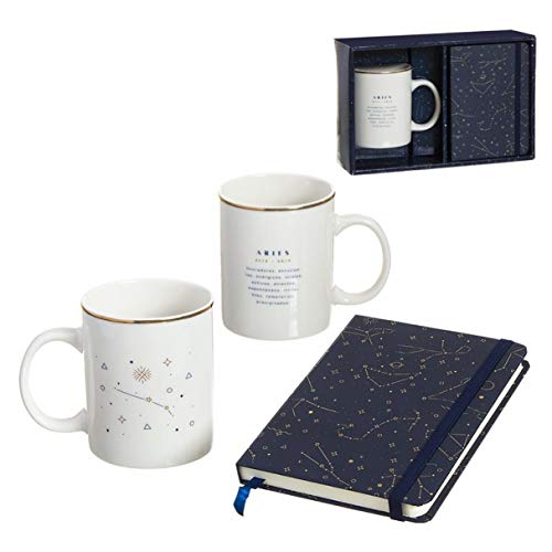 Set Regalo Taza Cafe con Libreta Horoscopo Aries Cumpleaños Amigo Invisible Unisex Azul