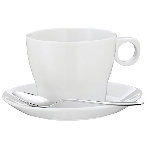WMF – Taza Café con Leche con Plato y Cuchara 0,225l, 7,5cm Altura Barista
