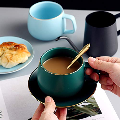 Multiuso: el conjunto de taza de café y platillo es viejo para cappuccino, espresso, macchiato, latte, demitasse, té y café. Este conjunto de taza de café de diseño de moda divertido y atemporal le permite disfrutar de un café fuerte.