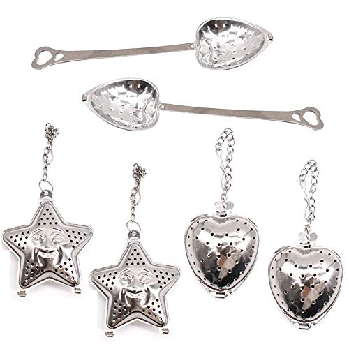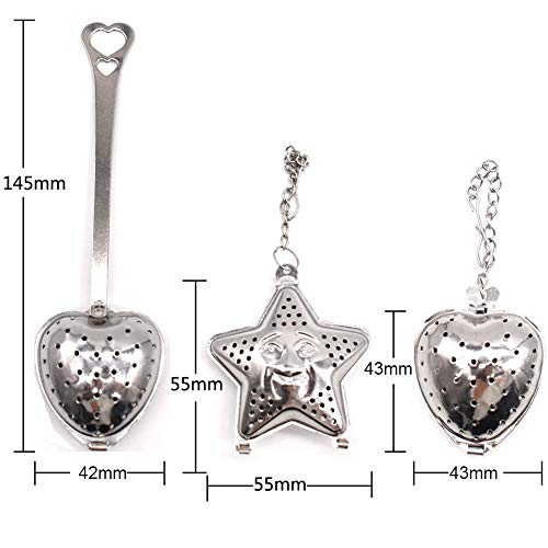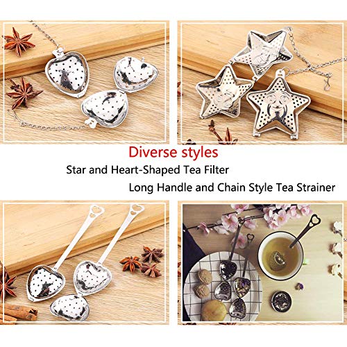 ✿Diversos Estilos: Estrella de puñal inoxidable y filtro de té en forma de corazón.Mango largo y colador de té estilo cadena.Diferentes estilos de coladores de té para diferentes infusores de té.