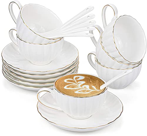 Yesland – Juego de 6 tazas de café con platillos y cucharas
