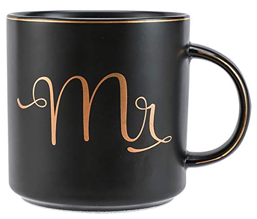 El juego de tazas de café de cerámica para parejas de Yesland está acto de cerámica, estas tazas de 355 ml están hechas a mano y detalladas para que coincida con cualquier estilo. Estas tazas de café con MR & MRS en letras doradas y mango dorado. El texto «Mr. / Mrs» está impreso en un lado. Ambas tazas vienen empaquetadas en una caja de regalo a juego, por lo que son convenientes para regalar. Este juego de tazas es el regalo rematado para recién casados o parejas que celebran un aniversario de muchos años juntos.